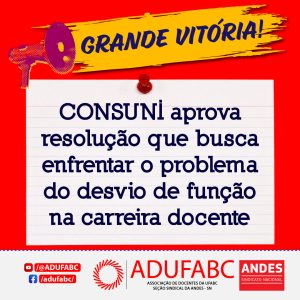 Grande vitória dos/as professores/as da UFABC: o CONSUNI aprova resolução que busca enfrentar o problema do desvio de função na carreira docente Na primeira sessão ordinária de 2026, o Conselho Universitário da UFABC tomou uma decisão histórica: aprovou uma resolução